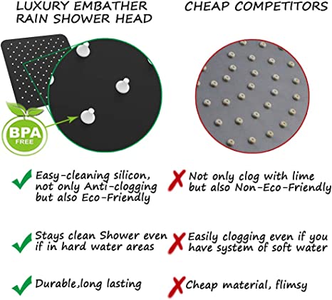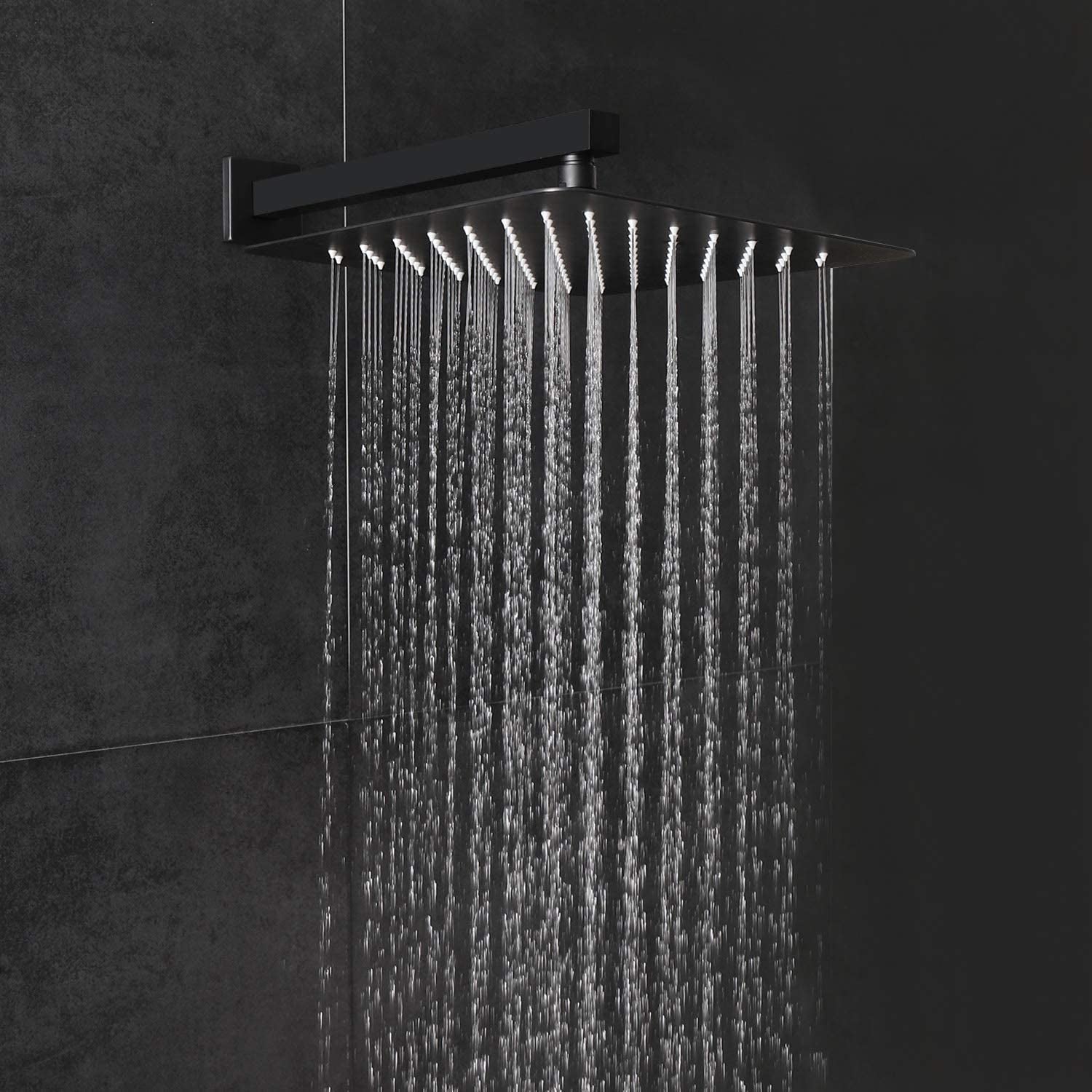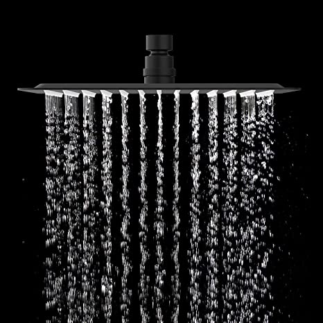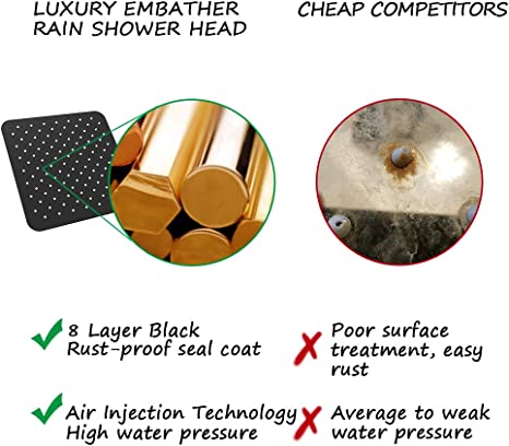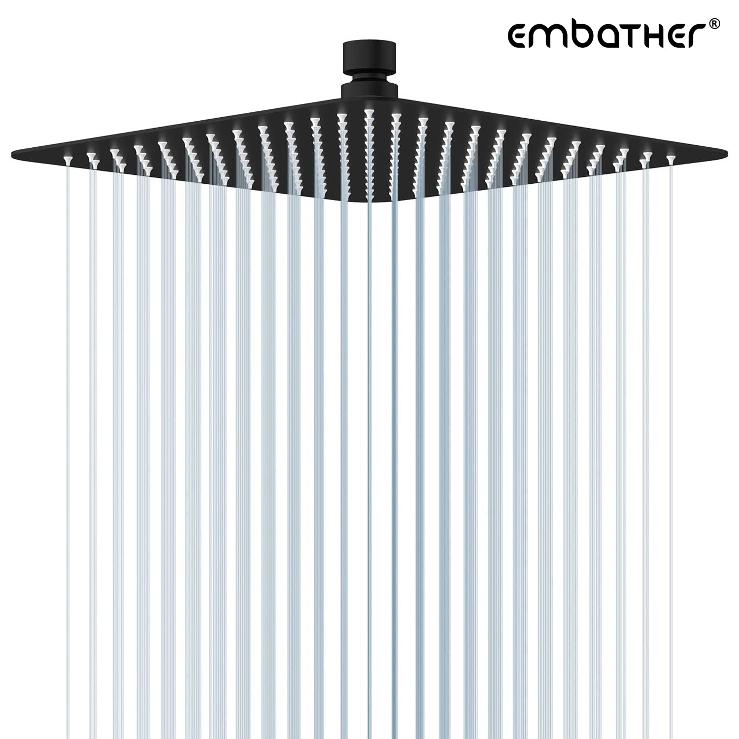 EMBATHER 12 Inches Black Rain Shower Head, Stainless Steel High Pressure Square ShowerHead, Ultra Thin Waterfall Full Body Coverage with Easy-Clean Nozzle