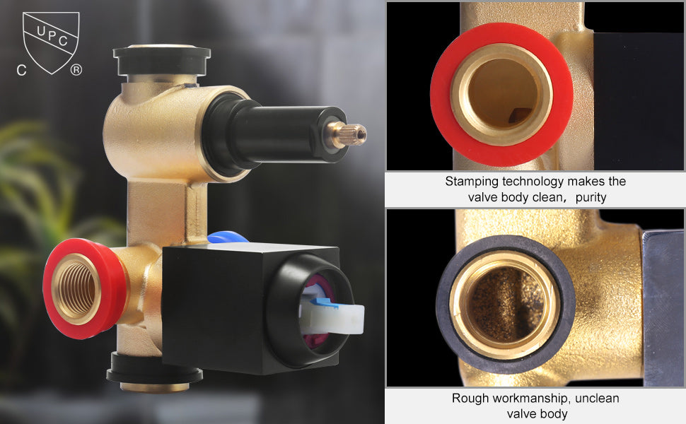 - ENJOY A PEACEFUL DREAM: Our shower faucet is equipped with a check valve that can prevent water from hummer, and you can have a peaceful sleep. At the same time, the cUPC certification ceramics cartridge effectively controls water pressure balance to prevent scald and cold water shock.
