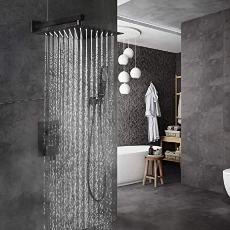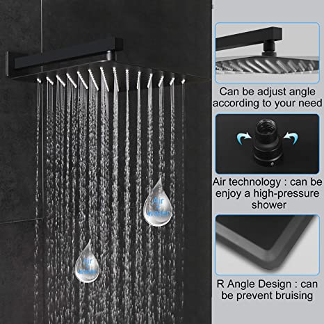 EMBATHER Shower System -Black Shower Faucet Sets with 10"/12 inches Rain Shower Head For Bathroom, Wall Mount Square Shower Combo Set for Bathroom (Contain Shower Valve and Trim)