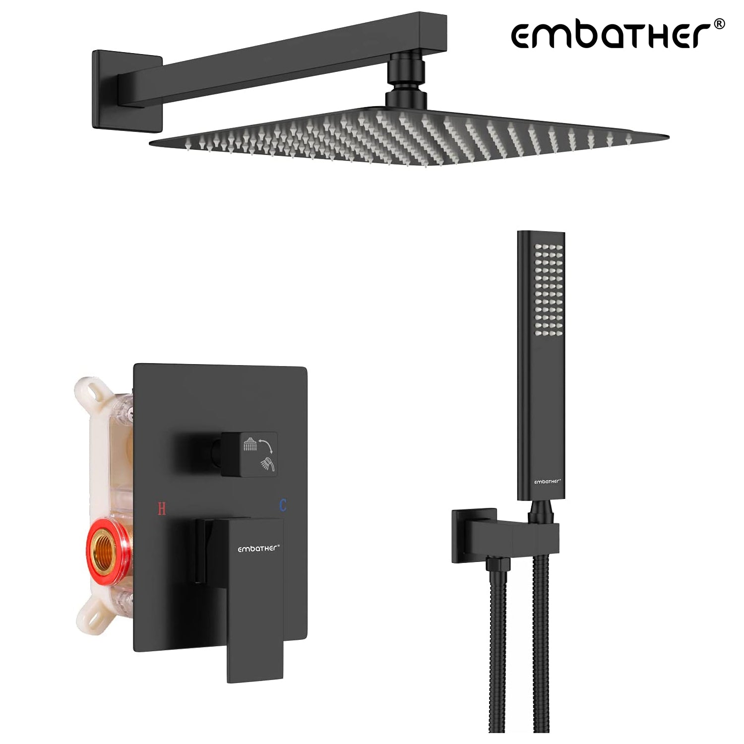 - HIGH-END MATERIAL: OUR PRODUCT ARE UPC APPROVED OTHER SELLS ARE FAKE, Please confirm our brand EMBATHER before buying. Body Made From High-Quality Brass. Not easy to rust, ensures long-lasting durability, and enjoys a luxury rainfall shower.